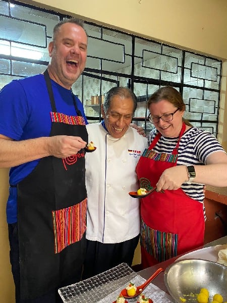 Begeben Sie sich auf eine einzigartige kulinarische Reise durch Peru mit diesem aufregenden Erlebnis. Ihr Tag beginnt um 6:00 Uhr morgens, wenn Sie von Ihrer Unterkunft abgeholt und zum größten Fisch- und Meeresfrüchtemarkt Limas gebracht werden. Hier erfahren Sie mehr über den Humboldtstrom und seine entscheidende Rolle bei der Entstehung der außergewöhnlichen Vielfalt an Meeresfrüchten in dieser Region. Danach erkunden Sie einen belebten Obst- und Gemüsemarkt und wählen die Zutaten für Ihren nächsten Kochkurs aus. Als nächstes besuchen Sie das Haus der Köchin Mabel Aliaga, wo Sie in die Kunst der Zubereitung traditioneller peruanischer Gerichte eintauchen werden. Das Erlebnis beginnt mit einem Begrüßungsgetränk, gefolgt von der Zubereitung einer Vorspeise, eines Hauptgerichts und eines Desserts. Ihr kulinarisches Abenteuer endet mit einem Mittagessen, bei dem Sie die von Ihnen zubereiteten Gerichte genießen können, bevor Sie zu Ihrem Hotel zurückkehren.