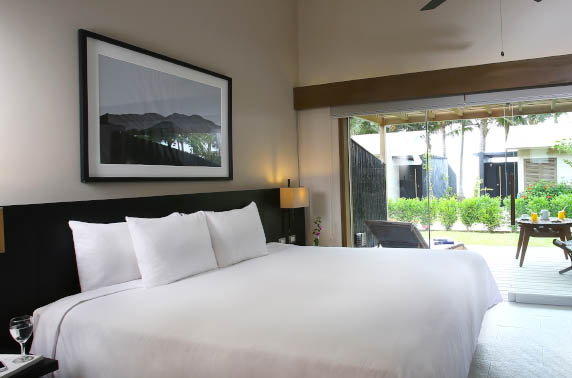 The open-air public areas add to the openness and ‘airiness’ of the property, further enhanced by the wooden floors, abundant palm trees and understated design features. The hotel features a large outdoor pool with ample place to soak up the sun and relax as well as an excellent on-site restaurant and bar with a wide range of international dishes on offer.