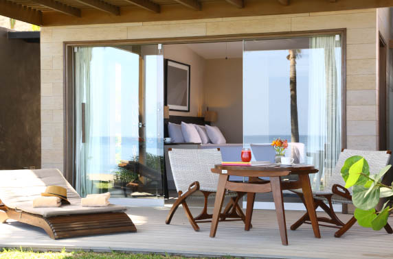 Arennas Mancora is a small boutique resort, offering luxurious accommodation and fine cuisine in a striking beachfront location directly on the Las Pocitas Beach and only 15 minutes away from the fishermen village of Mancora. With the choice between an ocean view and garden view throughout the hotels 4 room categories, there is definitely something for everyone.