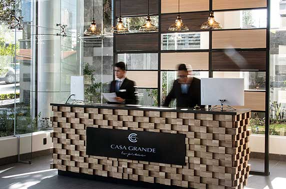 Casa Grande Express is a classy mid-range hotel located in the south zone of La Paz. The sister hotel of Casa Grande Hotel and Casa Grande Suites, Casa Grande Express is the more affordable and casual option of the three. Given that the other two properties are five-star hotels, this modern avant-garde three-star property benefits of excellent service in a relaxed setting.
