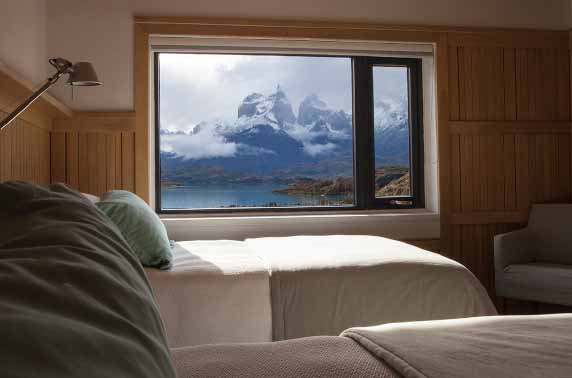 You will find yourself surrounded by the dramatic jagged mountains of the Torres del Paine and stunning vistas that sweep over the mirror-like lake surface. All TV-free suites have enormous windows with broad views over the exquisite remote landscape, allowing you to completely disconnect from everyday life. The property was designed in such a way that it is the perfect base from which to explore the Torres del Paine National Park and with over 40 included excursions to choose from, so you can be sure that something will tickle your fancy.