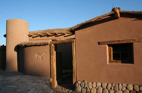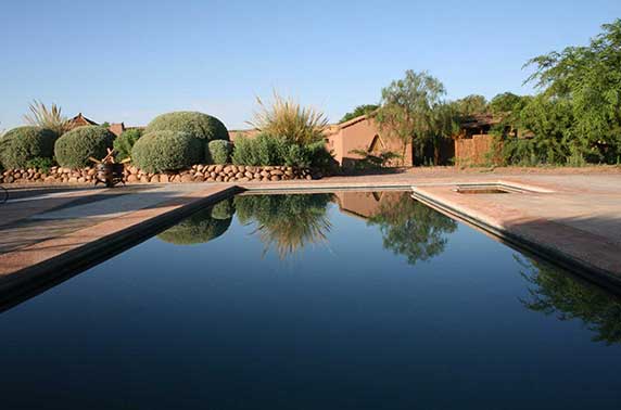 The hotel (formerly 'Altiplanico') is located just outside of San Pedro de Atacama, on the outskirts of town, and faces the impressive Licancabur Volcano. It has been designed in the local Atacameña adobe style and follows the concept of visual silence which lends itself to the property’s overall air of tranquility and serenity. It is close enough to the main San Pedro street for you to reach it by means of a short walk, yet far enough away for you to be able to enjoy undisturbed relaxation from either your room or one of the spacious and ample common areas. Unlike the smaller hotels near the main street, the Habitas features a beautiful swimming pool area with ample space to relax and enjoy the famous Atacama sunsets. The hotel has 29 rooms, divided between single, doubles, triples, and family rooms, and is arranged in three semicircles with individual terraces.