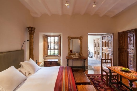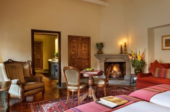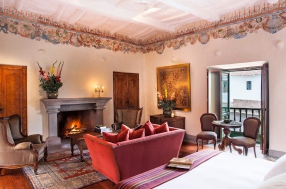 Centrally located in one of the most beautiful squares in Cusco, this 16th-century manor has been transformed into Peru's first Relais & Châteaux property. The hotel operates as a private house for a limited number of guests and is not open to the general public. You will need to knock on the front door in order to be let in, there is no lobby and check-in is done in the mansion’s living room.