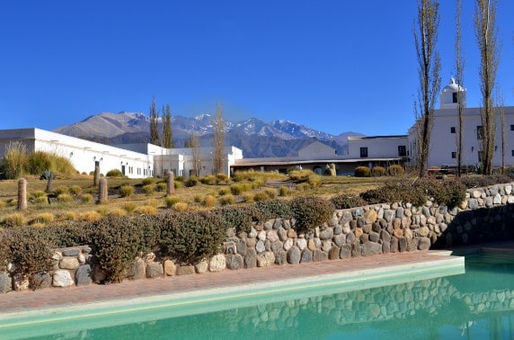 La Merced del Alto is a 14-room hotel located in the beautiful Calchaqui Valley, the perfect base for you to explore Argentina's rugged northwest. From this secluded haven, you will be able to venture out and follow a series of picturesque trails either on your own or with an expert guide who will teach you everything you need to know about the region. The properties spacious rooms exude a calming simplicity, with its white colonial walls, bamboo ceilings and terracotta tiled floors, and are each tastefully decorated with spectacular rustic accents which further add to the relaxing nature of the property. This is the perfect hotel for those who love to explore the outdoors as well as disconnect from the everyday hustle and bustle.