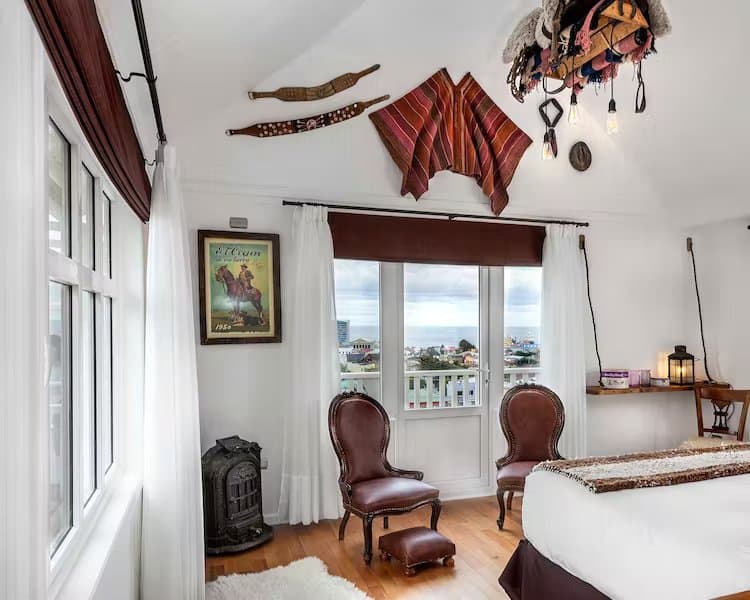 The La Yegua Loca Boutique Hotel is situated at the foot of the Cerro de la Cruz hill in Punta Arenas. Its privileged position gives its guests a picturesque view over the Strait of Magellan and Tierra del Fuego. It features 15 themed rooms each personally decorated by the owners (who are also the hosts) who wanted to express their love for their land and traditions. Each room is spacious, homey and comes complete with large beds and beautiful panoramic views over the colorful city as well as the Strait.