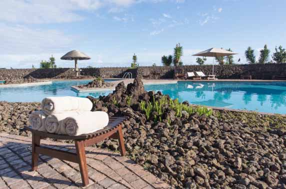 The hotel itself is set in the main town of Hanga Roa, directly on the shoreline looking out on the expansive Pacific Ocean and is the most centrally located luxury hotel on the island with a short three-block stroll to the nearest restaurants, bars, art galleries and souvenir shops that make up the majority of the town.