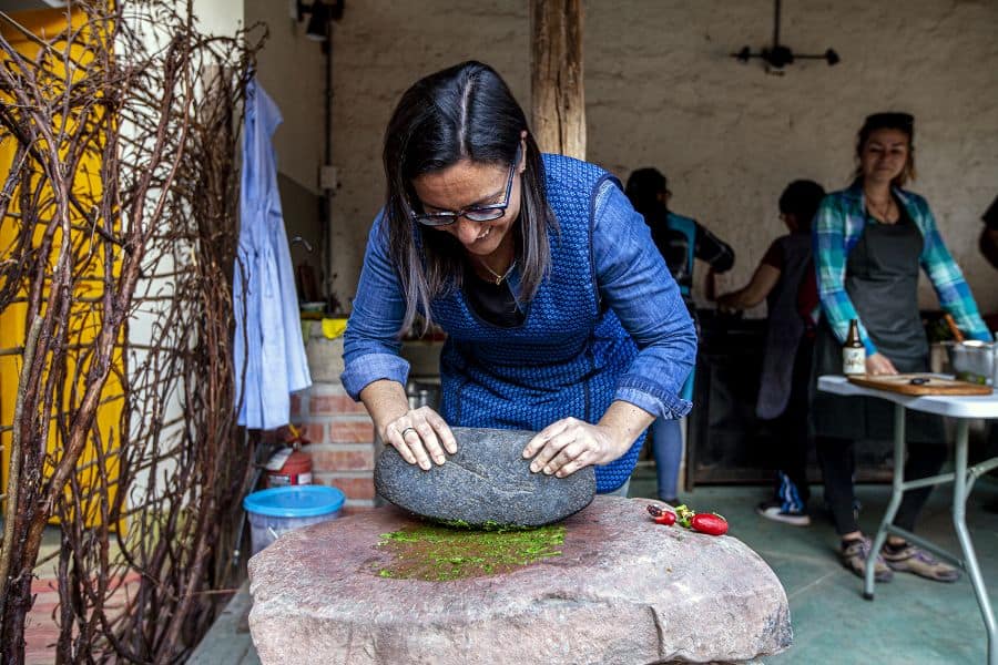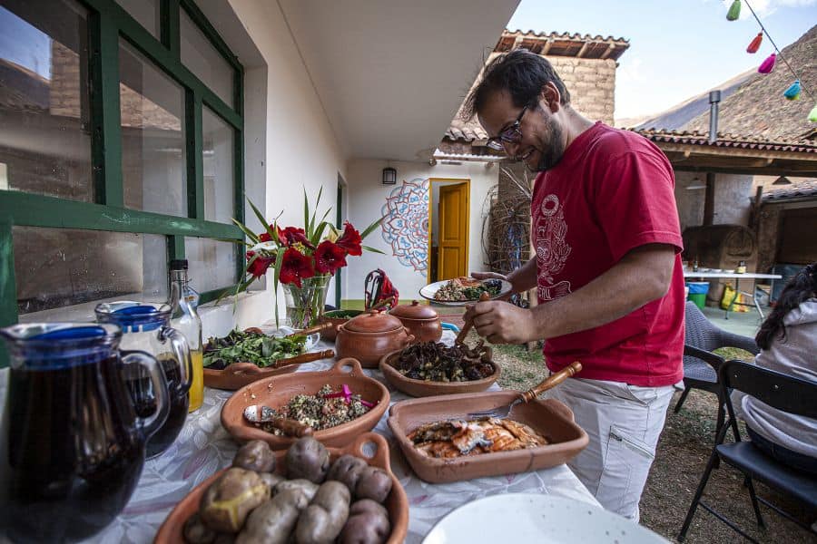 After learning about fascinating local culinary techniques, you will get to enjoy a mouthwatering and nutritious lunch. Well-fed, make sure to stop by the La Base de Lamay shop to buy some authentic souvenirs. The goodies sold there are all sourced from local micro-providers, directly supporting Lamay and its surrounding communities. Lamay is one of the less touristic communities of the Sacred Valley and any income they receive from tourism is greatly appreciated, allowing them to develop in a sustainable way.