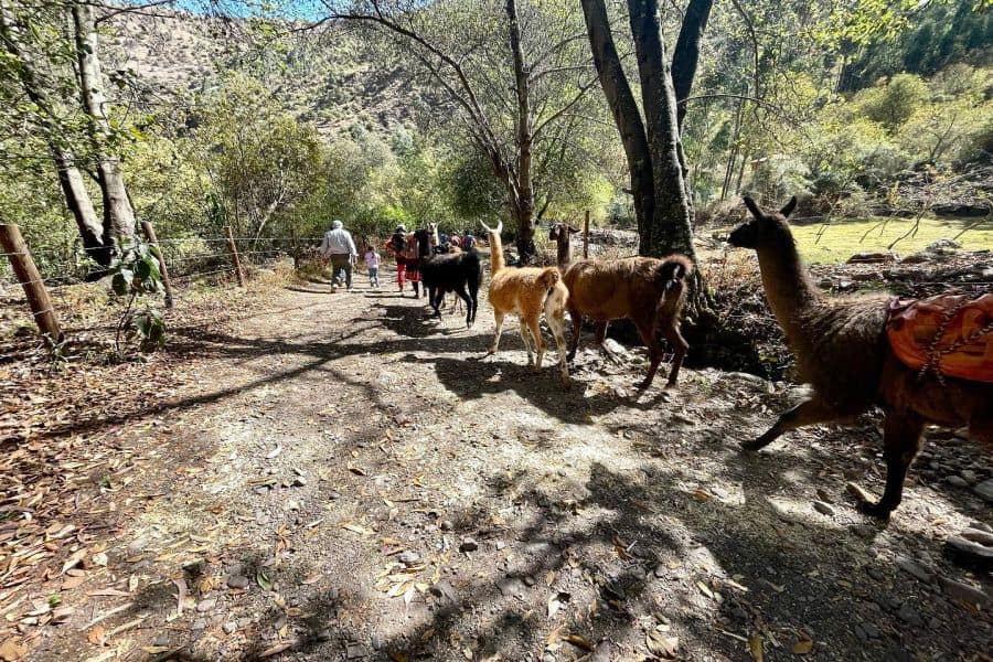 Afterward, you will assist with the herding and packing of the llamas to prepare for your full-day llama trek. Once ready you will make your way along a 4-hour uphill trail, past the river, and through native forests, learning about the benefits of using llamas as pack animals and their importance to the preservation of the high-Andean ecosystems.